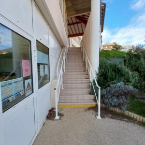 - Escaliers menant à l’accueil de l’établissement équipés de rampes