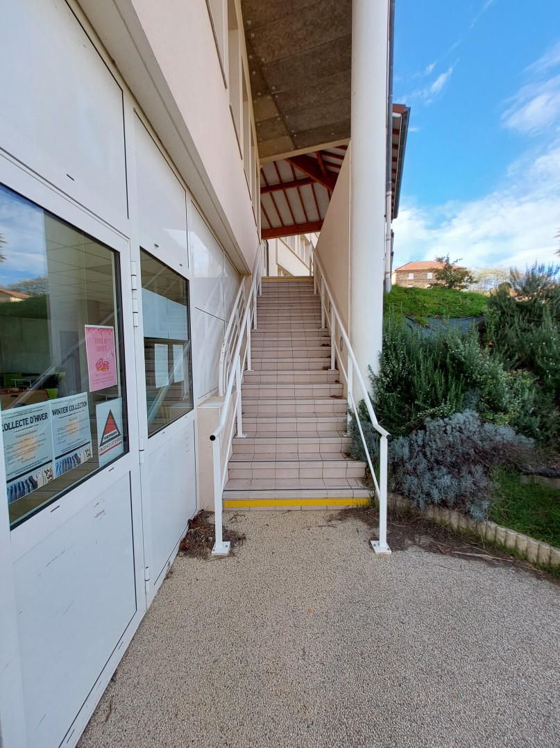 - Escaliers menant à l’accueil de l’établissement équipés de rampes