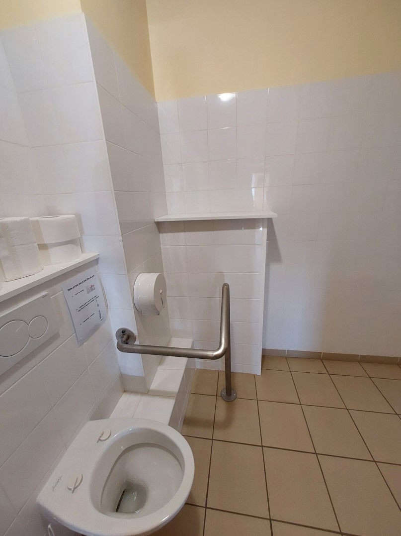 La rénovation complète des sanitaires garantit désormais une accessibilité optimale pour les personnes à mobilité réduite. Ces installations sont aujourd’hui pleinement conformes aux normes en vigueur, offrant un espace fonctionnel et adapté à toutes et tous.